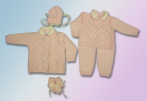 This sweater set consists of a coat, sweater, pant, bonnet, and booties. A matching blanket is available for an extra charge of .00 Shop for this exciting new fall arrival while sizings are still available. We have it in sizes ranging from size 3 months to 24 months.The set consists of a coat, sweater, Pant, Bonnet, and Booties. You could also add on the blanket for .00 more.