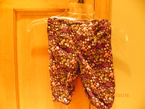 Shell: 100% cottonlining: 100% cotton.Purple, pink and green flowers. 2 side pockets. elastic and adjustable waist. 2 small bows at the end. Read More...H&M baby girls pants size 4-6 months Technical Details