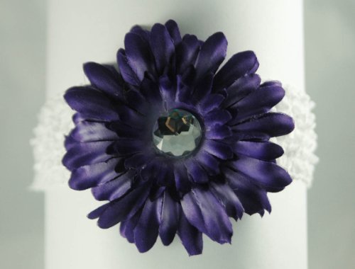 Buy Cheap 3-in-1 Gerber Daisy Flower Hair Clip Bow on Soft Stretch Crochet Child Headband fits Babies to Toddlers to Youth Girls, Violet Purple on White Headband for $