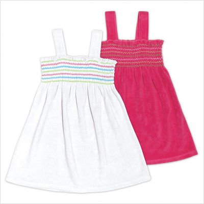 782100-013-47-COM Size: 3 - 4 Year, Color: White Features: -Available in 6 - 12 Month, 18 - 24 Month or 3 - 4 Year. -Available in White or Pink. -Cotton with elastic gathered top and colorful stitching. -Coordinates with our swimwear prints. -Easy on and off at the beach or pool. Specifications: -6 - 12 Month dimensions: 16.5'' - 22.25'' H x 14'' W x 0.25'' D. -18 - 24 Month dimensions: 17.5'' - 22'' H x 15'' W x 0.25'' D. -3 - 4 Year dimensions: 18.5'' - 22.5'' H x 16'' W x 0.25'' D. Read More...Terry Coverup Dress Technical Details